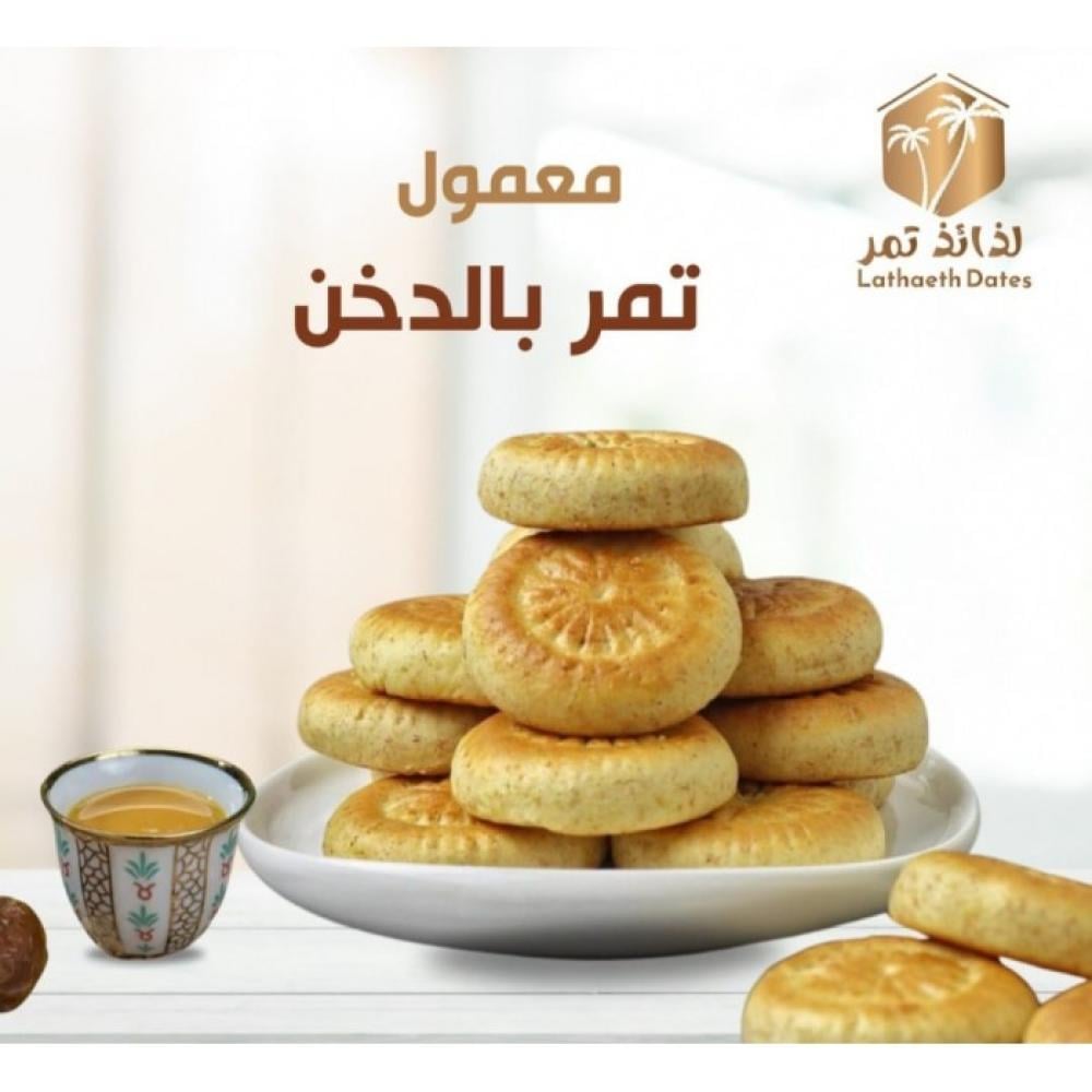 معمول دخن من لذائذ تمر مصنوع بحب من عجينة التمر الفاخرة. يُعتبر هذا النوع من الحلويات الشرقية من أشهر الأصناف في المملكة العربية السعودية ودول الخليج العربي، حيث يتميز بطعمه الحلو اللذيذ ورائحته الفريدة. استمتع بلحظات من اللذة مع دخن الحب الطري والهش، الذي يُصنع بعناية من أجود أنواع عجينة التمر الفاخر.